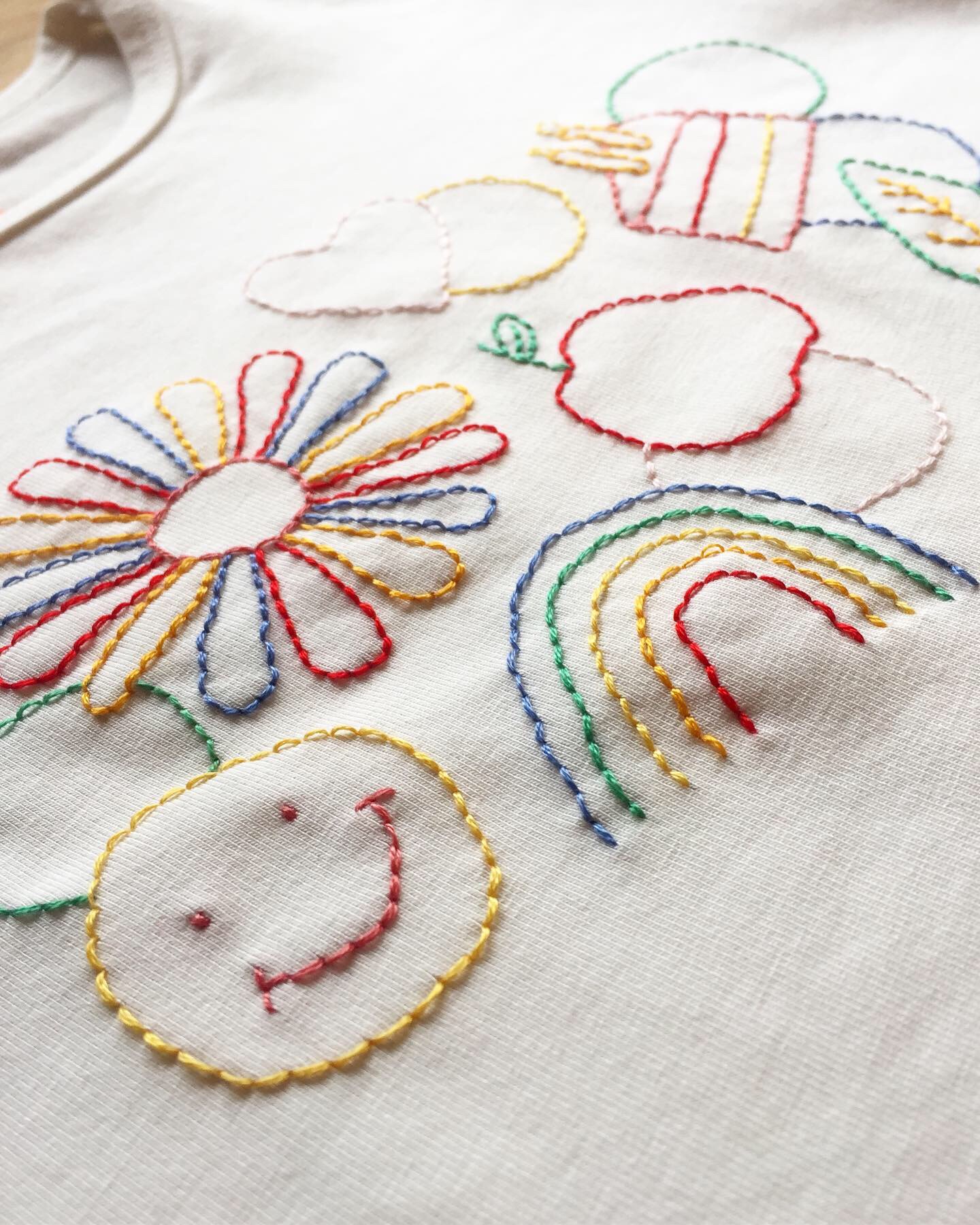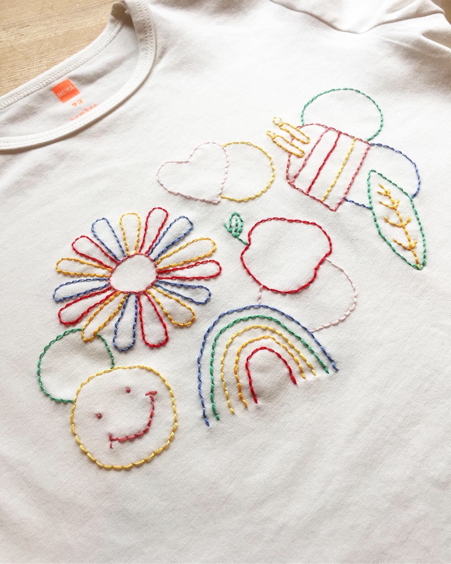 Eind 2019 viel ik in voor een collega die met zwangerschapsverlof ging. Als cadeau voor de komst van haar kindje heb ik een kinder t-shirtje geborduurd. Een persoonlijk cadeau dat hopelijk lang mooi en lang herinnerd blijft. Ik heb een digitale illustratie gemaakt, een verzameling van losse illustraties en deze overgetrokken op het t-shirt.