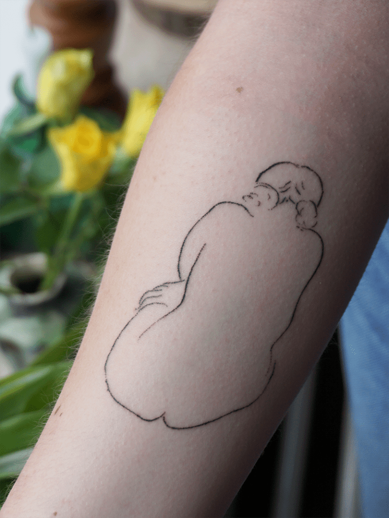 Zo gezegd, zo gedaan. Ik heb veel nagedacht over wat, waar en natuurlijk door wie. Waar ik zeker van was, was dat het een kunstwerk moest zijn. Als teken voor mijn passie en liefde voor kunst. Kunst betekent zoveel voor mij, dat ik daar nooit spijt van zou gaan krijgen. Uiteindelijk liep ik tegen een schets van Henri Matisse (Seated Nude, Back Turned) aan en wist ik meteen zeker dat dit hem moest worden. Minimalistisch, maar met karakter en vooral niet te strak. Ik deed onderzoek naar de juiste tattoo artist en de dag voor mijn 20e verjaardag werd hij gezet. Nu, 4,5 jaar later, draag ik nog elke dag een stukje Henri, een stukje kunst, met trots met me mee.