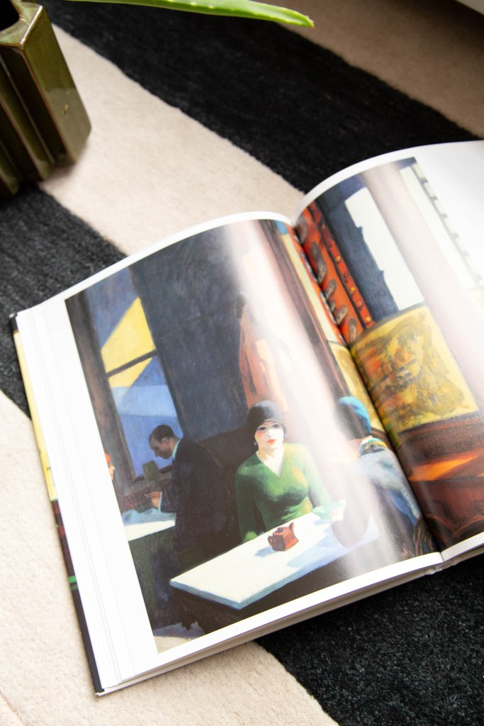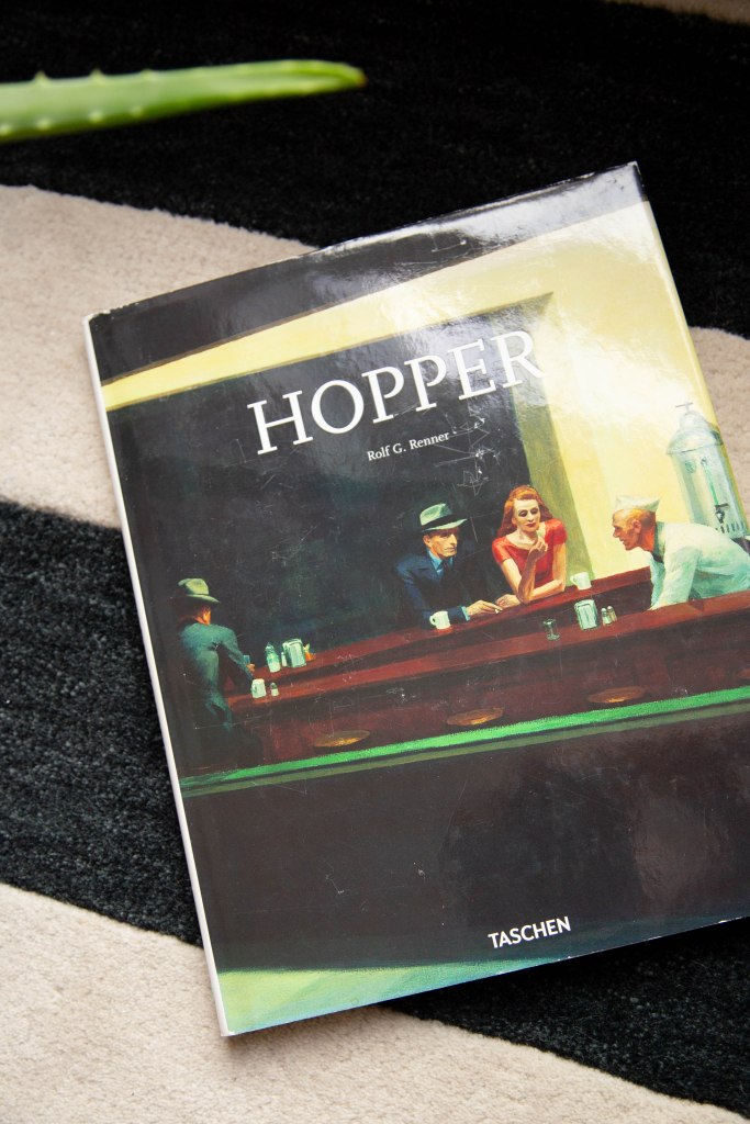 Dit boek gaat over de kunstenaar Edward Hopper. Een schilder uit de kunststroming ‘Realisme’. Hij schilderde realistische situaties, vaak met een sombere ondertoon. Ik vind zijn werk ontzettend krachtig en indrukwekkend. Hoe ik aan dit boek gekomen ben weet ik niet meer zeker, misschien ook wel uit de kringloopwinkel. Het boek is in ieder geval niet meer in de beste staat, maar dat heeft ook weer zijn charmes.
