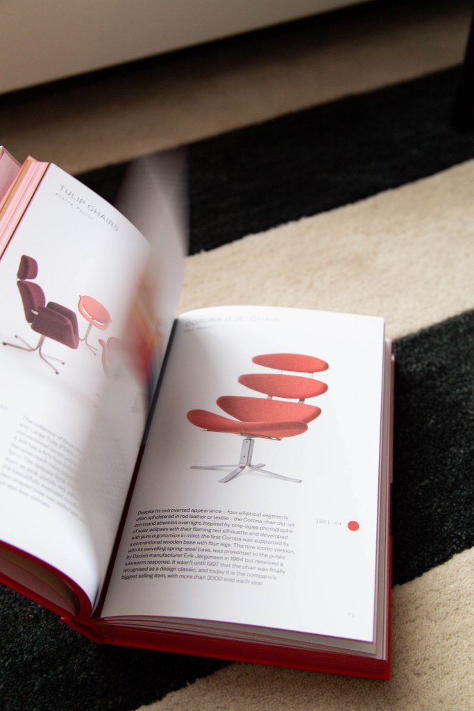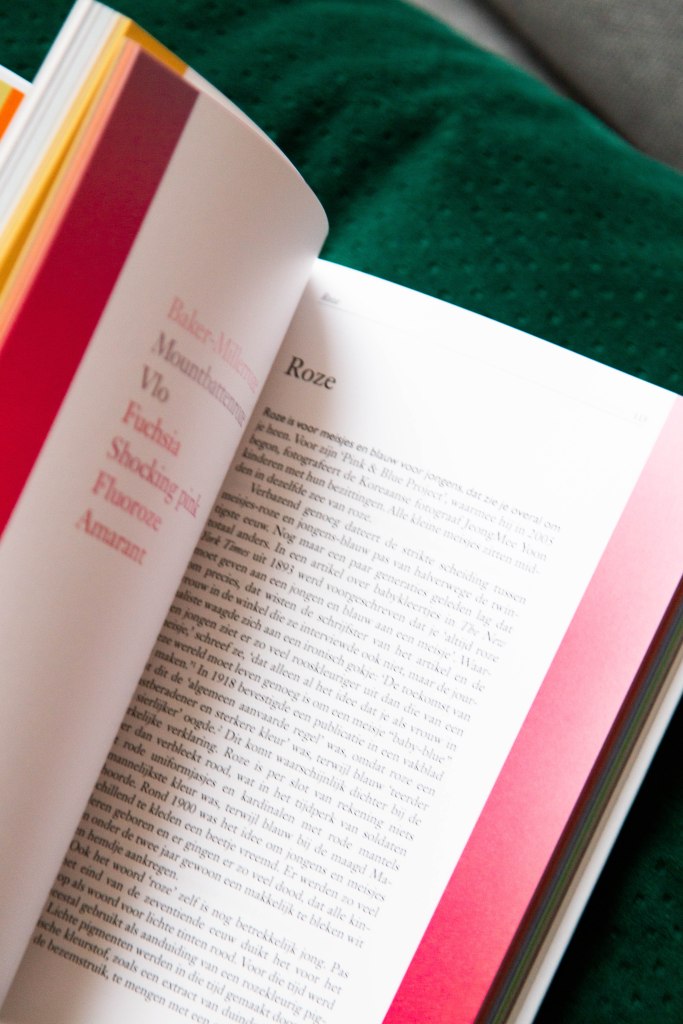 Nog een boek dat volledig in het teken staat van kleur, en dan wel gekleurd design. In dit boek wordt je op chronologische volgorde meegenomen in de ontwikkelingen van kleur in combinatie met design (meubels). Ik kwam dit boek toevallig tegen terwijl ik op mijn vriend aan het wachten was in een boekenwinkel en kon het vervolgens niet meer terugleggen. Iets wat me direct opviel was dat de pagina’s aan de zijkant van het boek rood gekleurd waren. Een fantastisch design-element als je het mij vraagt.