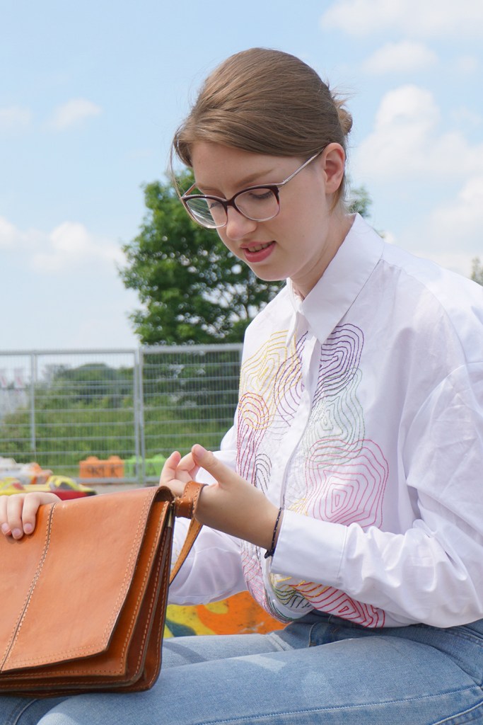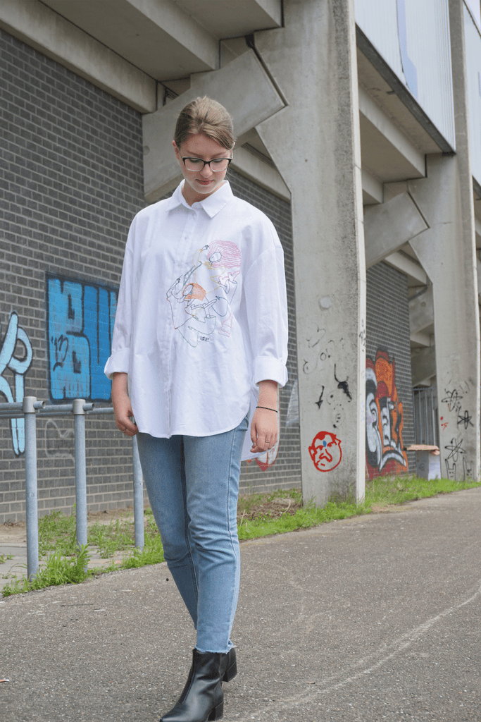 Tijdens de eindexpositie voor mijn opleiding Mediavormgeven op het Grafisch Lyceum Rotterdam (in 2018) besloot ik een ander medium te gebruiken dan het standaard potlood en papier. Ik wilde mijn illustraties op een andere manier tot leven laten komen. Ik was toen al heel af en toe iets voor mezelf aan het borduren, dus besloot ik mijn illustraties op deze manier te gaan verwerken. Ik koos voor twee grote blouses. Een mooie combinatie van mode en borduurwerk. Ik maakte twee illustraties en werkte dag en nacht aan het zo mooi mogelijk borduren van de blouses. Dit werk was voor mij alles of niets en ik stond te springen om dit aan iedereen te laten zien. Toen het eenmaal af was heb ik de blouses mooi gefotografeerd en de foto’s af laten drukken, om deze ook op de expositie te laten zien. Zo gezegd, zo gedaan, tijdens de eindexpositie van het GLR stond ik er met een geweldig en vernieuwend project, waar ik tot op de dag van vandaag nog steeds trots op ben.