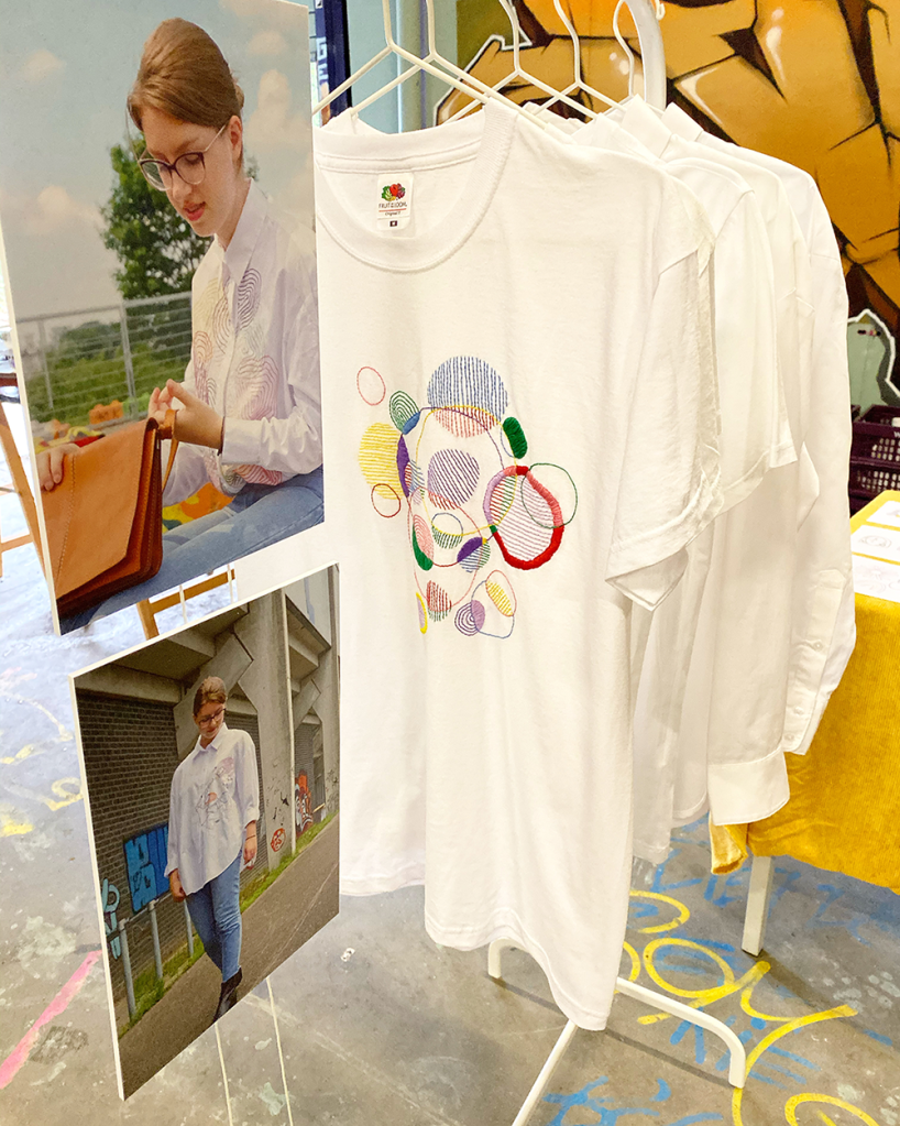 Na het werken aan de blouses had ik de smaak te pakken en wilde ik meer borduurwerk maken, wat ik ook nog eens zelf kon dragen. Het was een leuke manier om mijn borduurwerk ook buiten huis te laten zien en draagbaar te maken. Zo ben ik aan de slag gegaan met het maken van nog meer illustraties die ik vervolgens op t-shirts ben gaan borduren. Deze t-shirts draag ik vandaag de dag nog steeds.