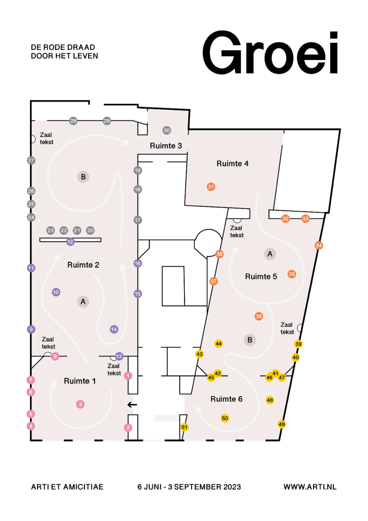 Mijn tentoonstellingsconcept kreeg het hoofdthema ‘Groei. De rode draad door het leven’. Ik koos voor dit thema omdat groeien een breed onderwerp is, waar je vele kanten mee uit kunt gaan. Ik heb dit ontwerp betrokken op de verschillende stadia en fases in het leven. Elke tentoonstellingszaal bestaat hierbij uit zijn eigen fase: Opgroeien, Groeipijn, Uit elkaar groeien, Er geen gras over laten groeien en Er overheen groeien.