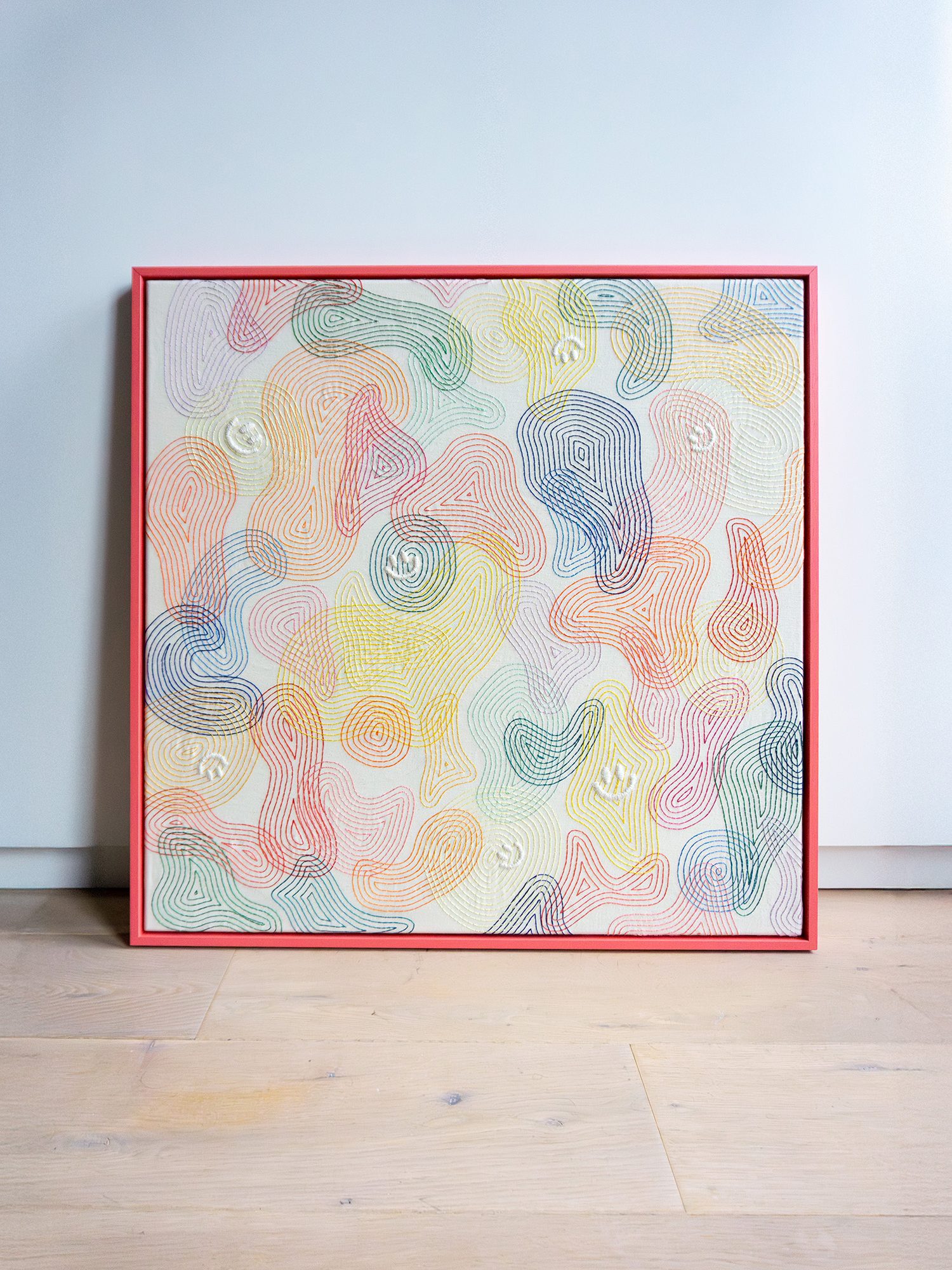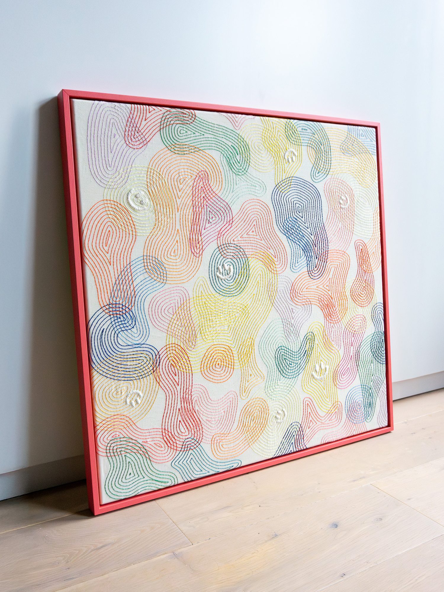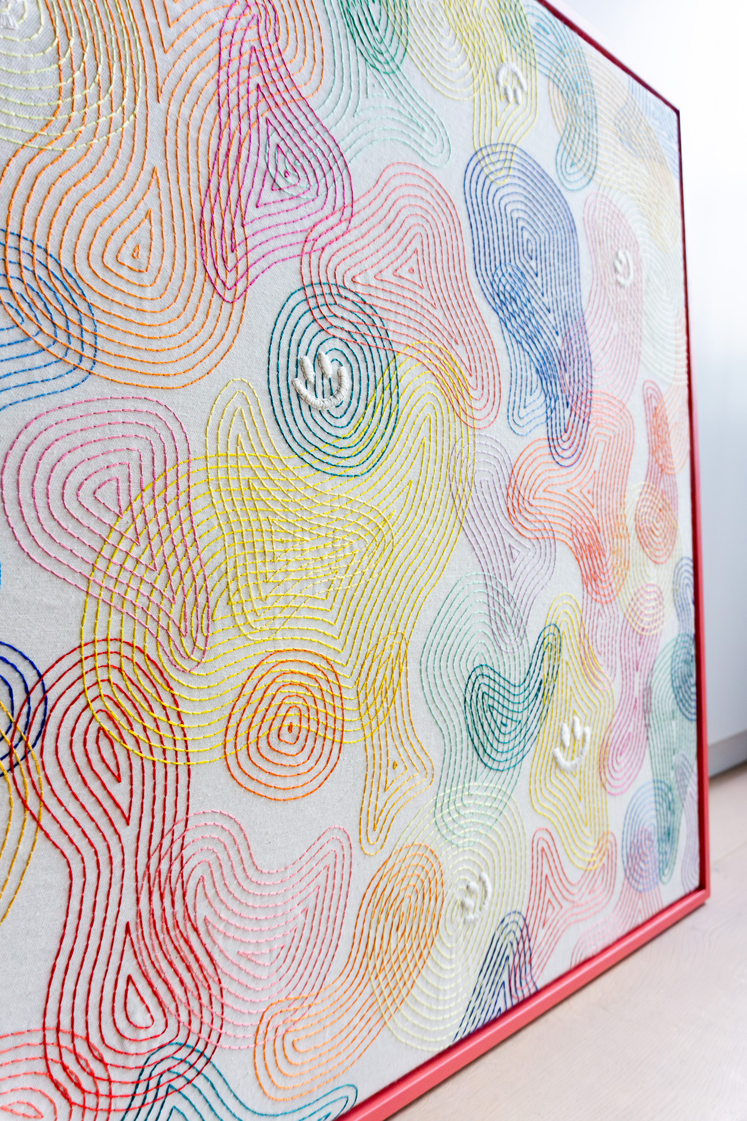 The Happy Few is een borduurwerk dat ik heb gemaakt in opdracht. Het werk is op maat gemaakt, met een kleurrijk ontwerp passend bij de opdrachtgever. Net als de smileys die er in zijn verwerkt. De samenstelling van felle en sprekende kleuren was voor mij weer eens wat anders en een leuke uitdaging om mee aan de slag te gaan.