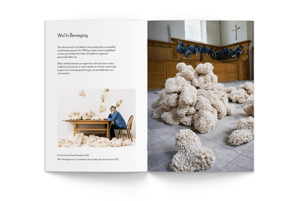 Mijn moeder, Gea Korpel-Beskers, is textielkunstenares. Voor haar heb ik haar portfolio tot leven gebracht in de vorm van een softcover boek. Hierin worden al haar mooiste projecten en objecten mooi uitgelicht. Dit boek kan ze gebruiken om neer te leggen bij tentoonstellingen, om weg te geven tijdens het netwerken of om te verkopen aan liefhebbers van haar kunstwerken.